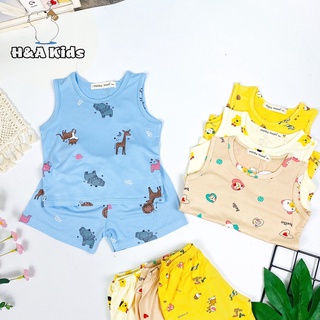 [Bé 7-32kg]Bộ Ba lỗ in toàn thân viền màu thun lạnh mềm mịn mát cho bé trai bé gái từ 7-32kg
