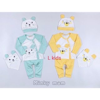 [Bé 6-13kg] Bộ dài tay sơ sinh kèm nón và khăn THUN LẠNH MINKY MOM Quần Đắp Đũng, Nút Cài Chéo, cho bé trai bé gái