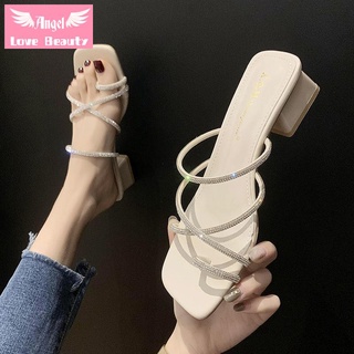 Dép Sandal Gót Dày Hở Ngón Đính Đá Thời Trang Mùa Hè Dành Cho Nữ 2022