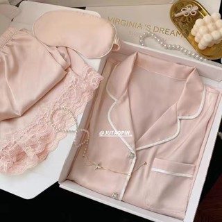 Bộ ngủ lụa của nữ phiên bản cao cấp loại 1 mẫu mới nhất bộ đồ mặc nhà hai mảnh thu đông ngọt ngào