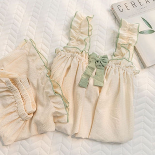 Ins Bộ đồ ngủ nữ đơn giản phong cách Nhật Bản ngày hè 2022 bộ đồ mặc nhà thắt nơ mới ngọt ngào và dễ thương