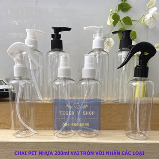 Chai pet nhựa 200ml vai tròn, nắp vòi nhấn các loại đựng xà phòng, dầu gội, sữa tắm