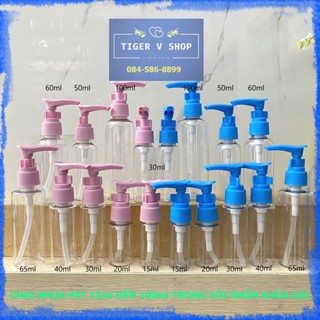 Chai nhựa pet 15ml, 20ml, 30ml, 40ml, 50ml, 60ml, 65ml, 100ml trong vòi nhấn khóa gài xanh, hồng sang chiết mỹ phẩm