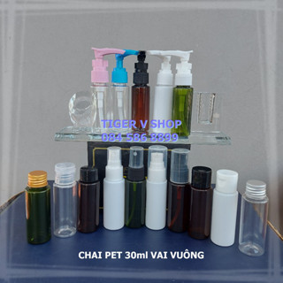Chai pet nhựa trong 30ml vai ngang, vòi nhấn, phun sương, xịt giọt, nắp bật