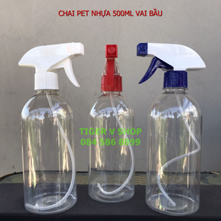 Chai pet nhựa 500ml vòi nhấn, phun sương và nắp bật