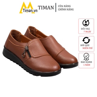 Giày lười nữ vải da kiểu mọi đế cao màu trắng slip on độn đế cho trung niên bảo hành 1 năm H07 TIMAN