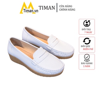 Giày lười nữ chất liệu da vải slip on kiểu mọi đế cao màu trắng độn đế bảo hành 1 năm BH58 TIMAN