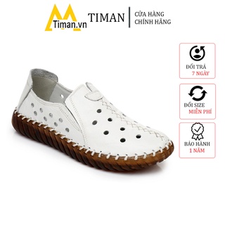 Giày lười nữ chất liệu da vải slip on kiểu mọi đế cao màu trắng độn đế bảo hành 1 năm ZD82 TIMAN