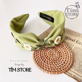 Băng đô cài tóc hoa cúc vải xanh handmade cao cấp TÍM STORE phụ kiện dễ thương vintage