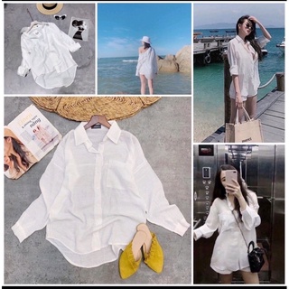 Áo Sơ Mi Trắng Dài Tay Nữ Chất Trơn Đũi Nhẹ Mát Form Siêu Xinh