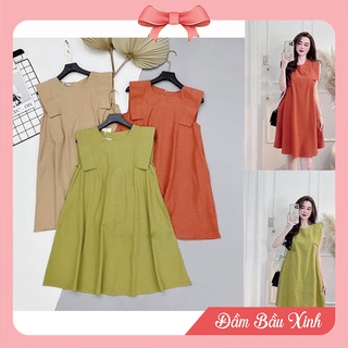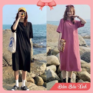 Đầm bầu suông tay hến cổ tròn Váy đuôi cá chất cotton siêu xinh hàng VNXK