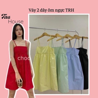 Váy hai dây dáng xòe babydoll đầm sexy đi biển bốn màu trẻ trung freesize Tira V1362