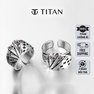 Nhẫn nam nữ Thần Bài, nhẫn họa tiết unisex freesize Titan Shop, ring bộ bài sảnh tiến JQKA màu bạc thời trang không gỉ