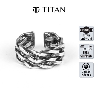Nhẫn Nam Nữ Thời Trang Thép Đan Freesize HipHop Bụi Bặm Cá Tính Họa Tiết Nan Đan Chéo Màu Bạc Ring Unisex TITAN SHOP