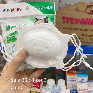 Set 3 khẩu trang Mio Mask, Khẩu trang gấu cho bé kháng khuẩn, khẩu trang 4D trẻ em