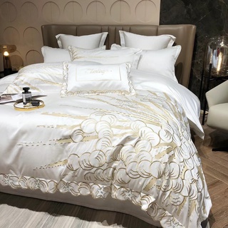 Bộ Chăn Ga Gối Cưới Lụa Silk 4 Món Thêu Hoàng Gia Đẳng Cấp nhập khẩu