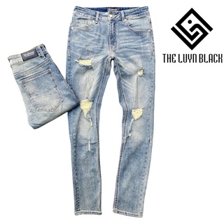 Quần Jean Nam The Luyn Black Phong Cách Streetwear Rách Gối Màu Xanh Nhạt Đơn Giản Dễ Phối Đồ