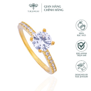 Nhẫn bạc nữ TLEE đá tròn mạ vàng 14k sang trọng NCJ A0131