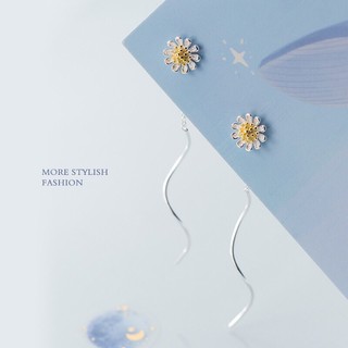 Khuyên tai bạc nữ TLEE tua hoa cúc xi vàng nữ tính TleeJewelry