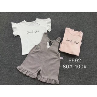 Thời trang trẻ em - Bộ áo ngắn tay + quần yếm xinh xắn cho bé gái - Quần áo bé gái - Bộ bé gái