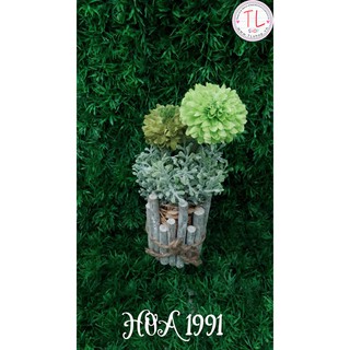Chậu gỗ hoa cúc xanh lá- Chậu hoa gỗ trang trí - Hoa chậu gỗ