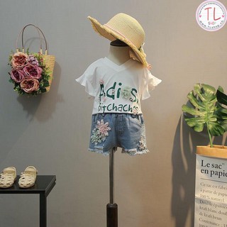Set bộ áo thun quần short jean ngắn đính hoa cho bé - Bộ bé trai - bộ bé gái - Thời trang trẻ em