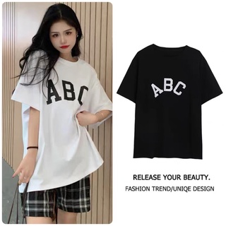 Áo thun nữ ABC form rộng tay lỡ chất vải Cotton NHUNG cao cấp mềm mịn, áo phông đen trắng Unisex nam nữ đẹp