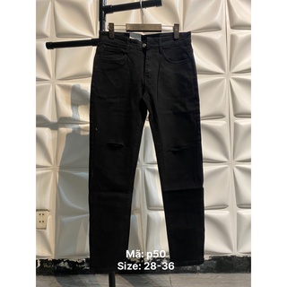 quần jean đen trơn nam rách gối bigsize basic slimfit mã 50 [tnhung]