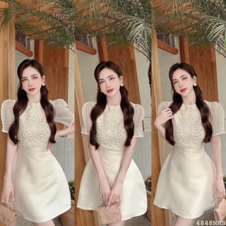 ĐẦM REN TAFTA ĐÍNH ĐÁ SANG TRỌNG [TNT SHOP BIGSIZE 60KG 90KG]
