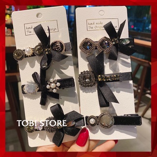 Kẹp tóc mái Hàn Quốc nơ đen đính đá nhiều kiểu dáng cực sang chảnh TB520