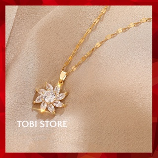 [Không đen gỉ] Dây chuyền nữ thép titan mạ vàng mặt hoa gắn đá TB544
