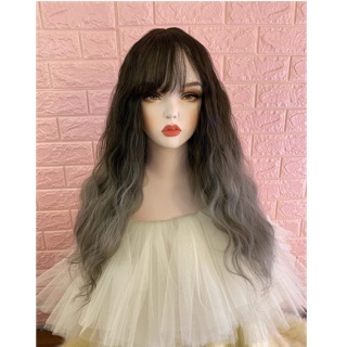 Tóc giả nguyên đầu xoăn phối line bạch kim, tặng kèm lưới trùm tóc, wig