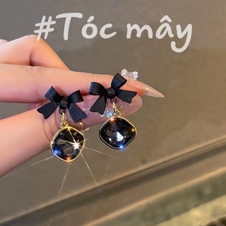 Khuyên tai nữ hình chiếc nơ đá đen kèm tua mini dễ thương H116