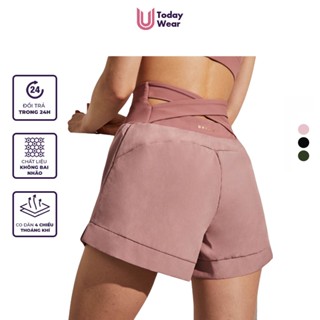 Quần đùi short tập gym yoga thể thao nữ Strap lưng cao màu trơn Today U Wear