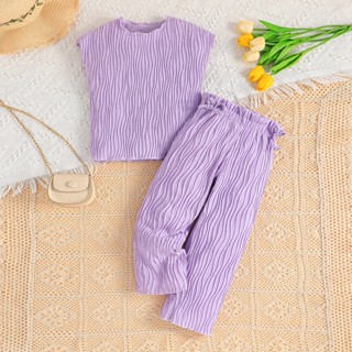 Combo bộ đồ bé gái 4 đến 7 tuổi Màu Tím không tay áo ba lỗ quần dài set mùa hè thời trang cho bé trẻ em