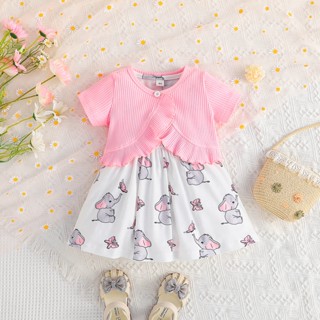 Combo Váy bé gái 9 Tháng - 5 Tuổi Kiểu Công Chúa Thời Trang Mùa Hè áo choàng ngoài tay ngắn In Họa Tiết Chú Voi Hoạt Hình Dễ Thương Cho Bé Gái Trẻ em