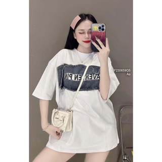Áo thun zip form rộng tay ngắn kiểu ngực phối jean in chữ !