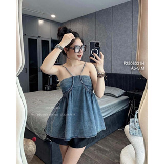 Áo jean 2 dây kiểu phối nhún chun lưng hàng đẹp!