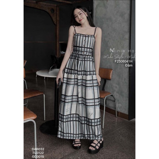 Đầm kiểu 2 dây dáng dài xòe caro nhún chun ngực !