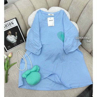 Áo thun xanh kiểu dáng rộng tay ngắn phối kèm túi dây ngọc!