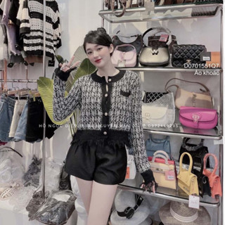 Set 2 món áo len cặp áo khoác gài nút tay dài kèm áo croptop 2 dây hàng QC!