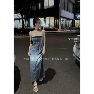 Đầm kiểu jean dáng dài xòe ngực phối màu 2 dây hàng QC!