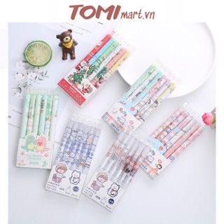 Bút Bi Gel Đen TOMI Set 6 Cây Ngòi 0.5mm Hoạ Tiết Hoạt Hình 054