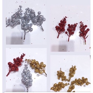 Chùm sung phủ nhũ kim tuyến, cành cherry kim tuyến trang trí mâm bánh, oản tài lộc Tết