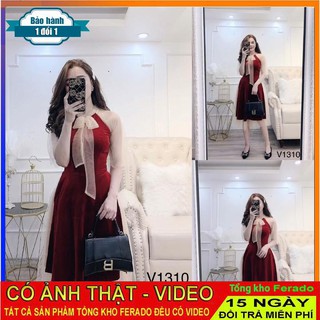 [ xả kho ] MiD Đầm đỏ umi bo tay V1314 cổ nơ thiết kế Mie Design kèm ảnh thật