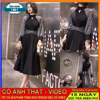 [ xả kho ] MiD Đầm đen umi phối lưới V1311 đính kim tuyến Mie Design kèm ảnh thật
