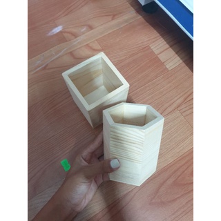 Cốc đựng cọ gỗ, cắm cọ và đồ dùng làm nail.