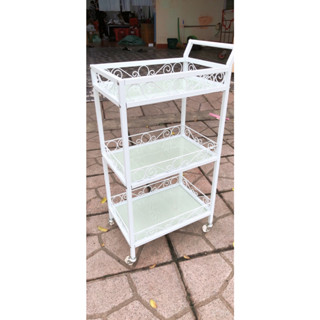 kệ xe đẩy spa Họa tiết hoa văn trắng, khung sắt vô cùng chắc chắn, kệ đựng đồ nail sắt có bánh xe