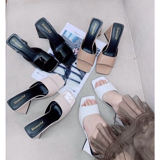 Guốc nữ gót tam giác 9 phân da bóng và quai trong hàng vn cao cấp