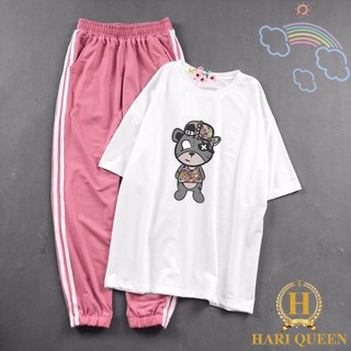 [FREE SHIP ĐƠN TỪ 50K] Sét áo gấu bông mắt chột + quần 2 sọc chun HARI0420 1